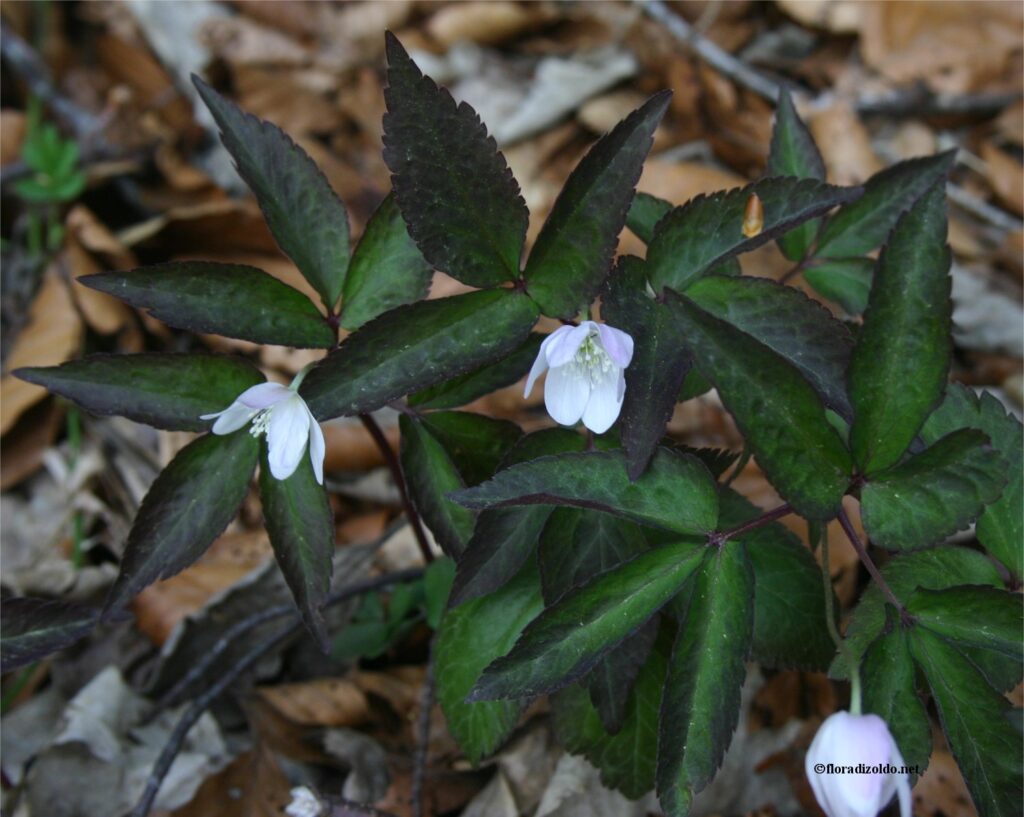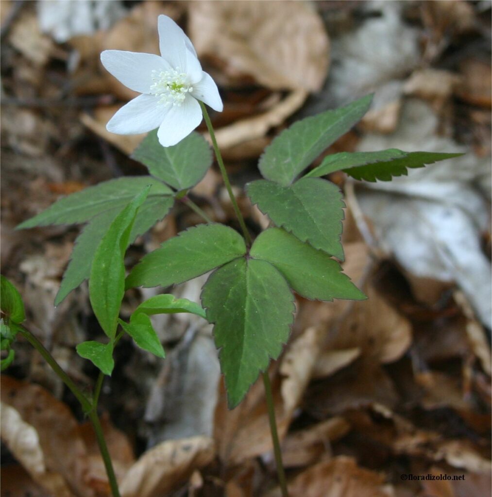 | Fiori bianchi più o meno screziati di roseo o violetto | Petali glabri sul lato esterno, acheni brevente pubescenti; rizoma orizzontale o tuberoso | Foglie divise in 3-5 segmenti, irregolarmente lobati o partiti; antere gialle | A.nemorosa *cm(s) | |