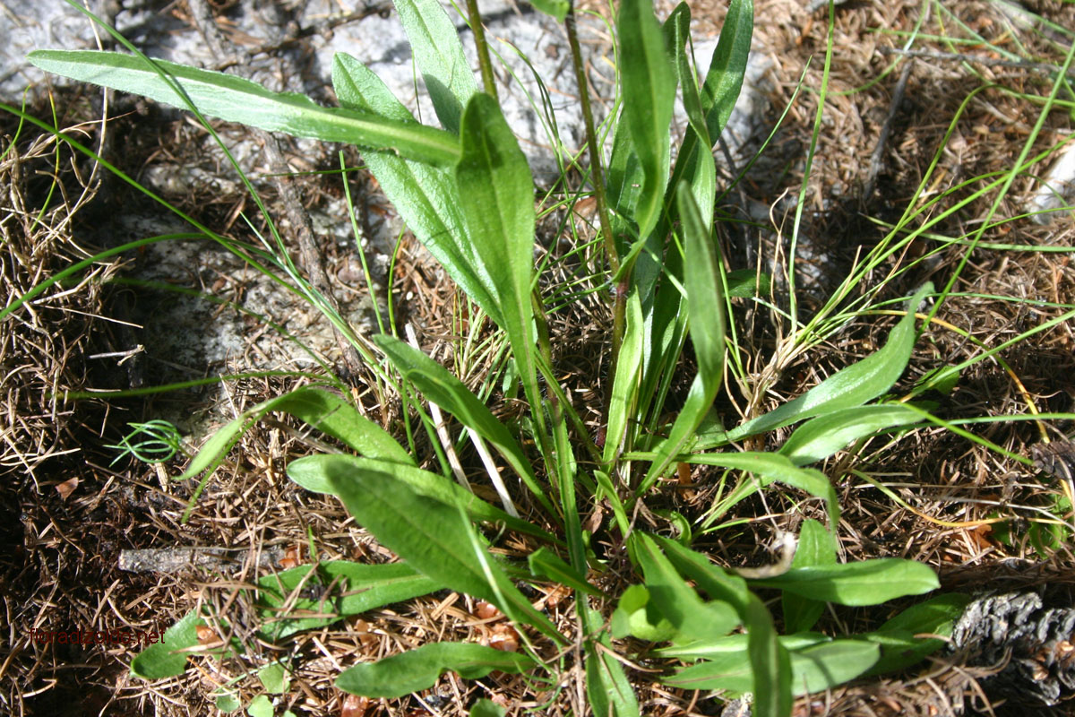 | Fusti ramosi con 2-5 capolini, raramente uniflori | foglie basali decisamente spatolate con lamina lunga al massimo la metà del totale, bruscamente ristretta nel picciuolo |