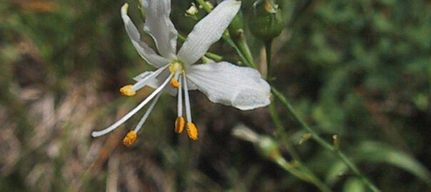 | Tepali lunghi 15-30 mm; peduncoli articolati poco sotto la metà; inflorescenza generalmente senza rami (racemo) o raramente più o meno ramosa | A.liliago |